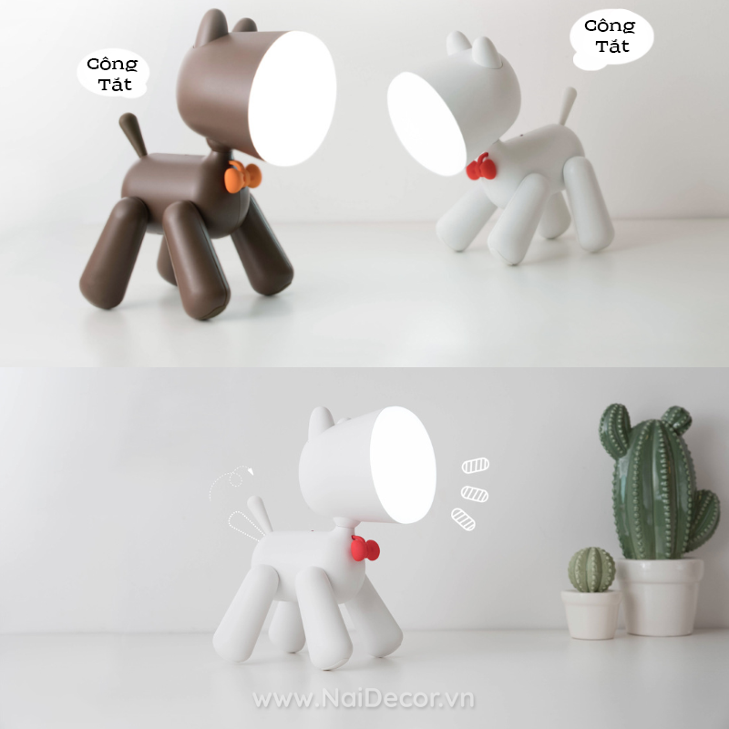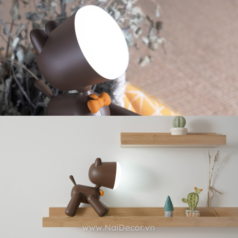 Chú Cún con xinh xắn, gần gũi và thân thiện, đèn với 2 nấc sáng khác nhau. Ánh sáng mạnh / Sáng sáng vừa.Sẽ đồng hành cùng bạn trong giấc ngủ, giúp bạn đọc sách, trang trí bàn học cực cute. Dùng làm đèn ngủ, đèn để bàn, đèn đọc sách,…thì quá tuyệt vời !