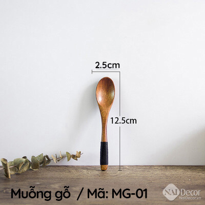 01. Muỗng gỗ 12.5cm – Màu nâu (dây đen)