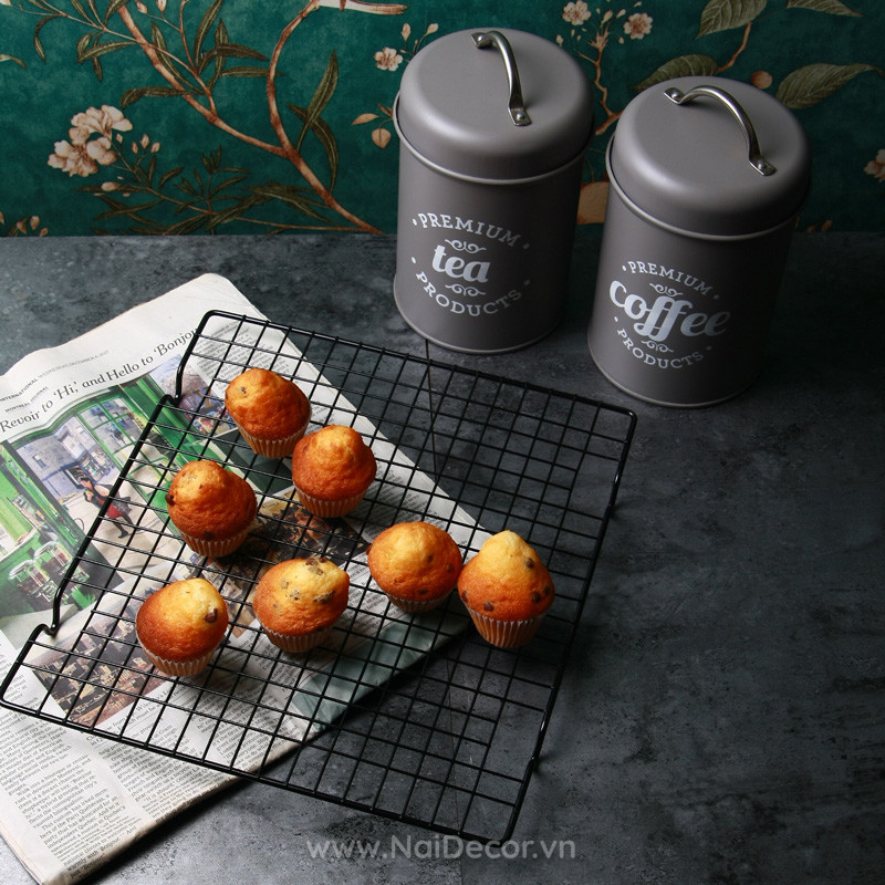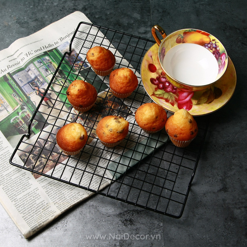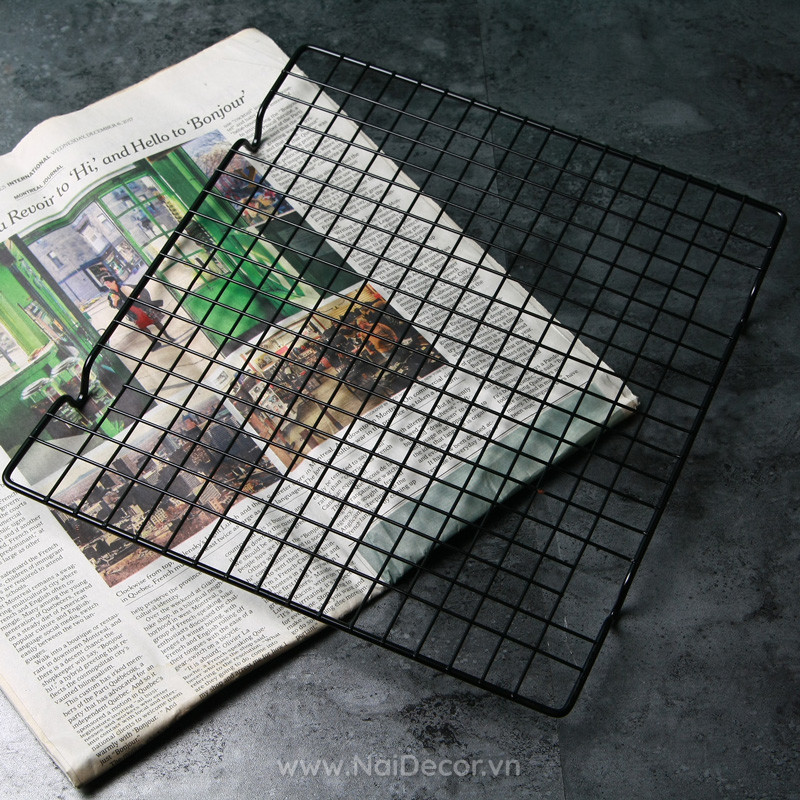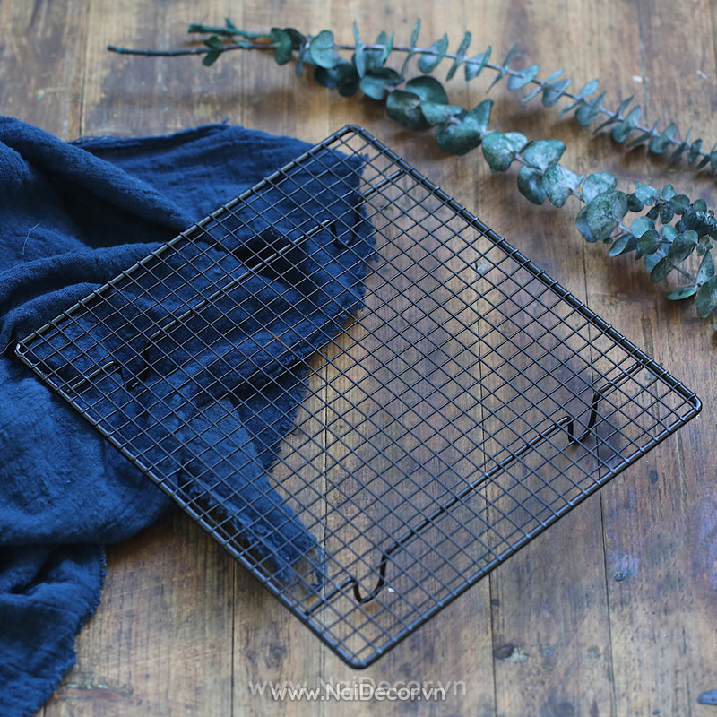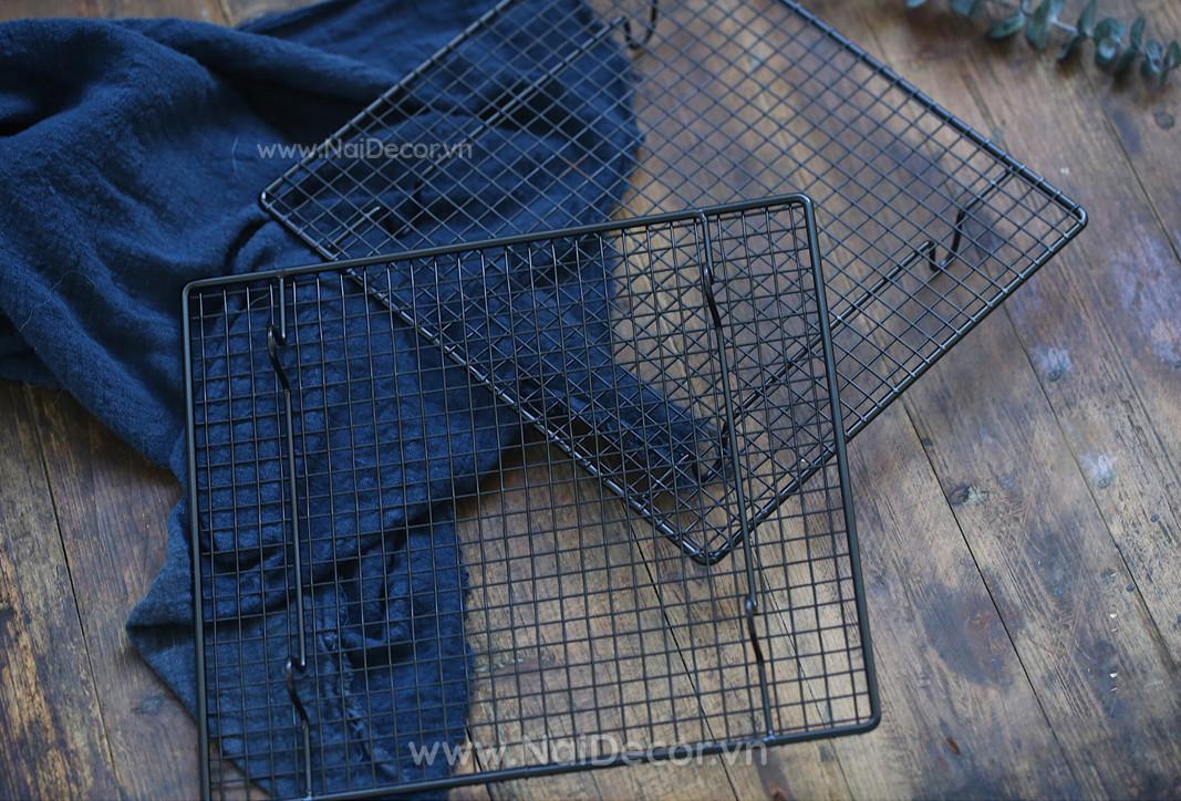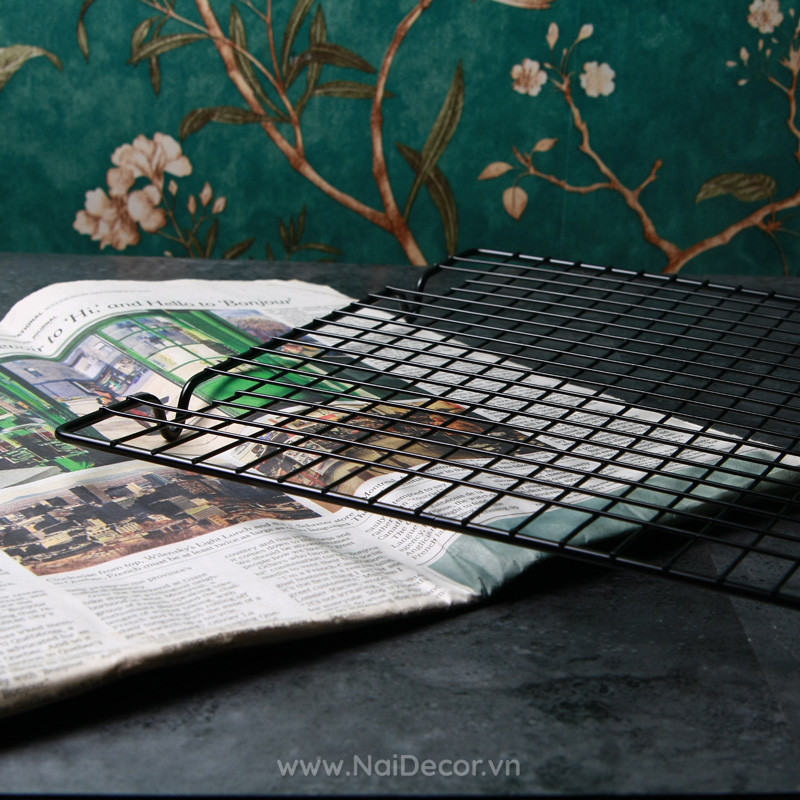 Vỉ nướng màu đen phù hợp để chụp các loại đồ ăn, bánh ngọt phong cách Tây.